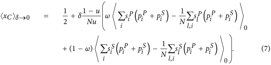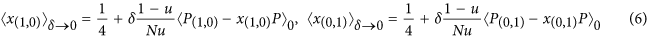 where 〈X〉 denotes the mean X in the stationary distribution and the subscript of 〈〉 is the selection intensity. Performing the perturbation theory in the limit of δ → 0, we have