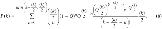 For the PD game, an individual receives the lowest average payoff when s/he cooperate and all his/her neighbors defect in one round. For the snow-drift game (also known as the hawk-dove or chicken game)41,42,43,44, an individual receives the lowest average payoff when s/he suffer the mutual defection in every game with his/her neighbors. Thus, the probability of a UI having degree k is given by