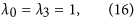 In equation (15), the eigenvalues λ0 = λ3 = 1 mean that