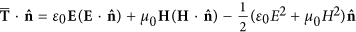 is the real part of the integration. T is the Maxwell Stress Tensor and gives the momentum density of the electromagnetic field in a medium with relative permittivity