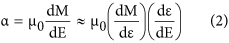 where M is the magnetization, E the applied electric field and ε represents the strain at the FE/FM interface. The term dm/dε can be approximated from a magnetoelastic model of the LCMO layer, while the piezoelectric coefficients for BTO provide an estimate for dε/dE. An order of magnitude estimate for the magnetoelastic derivative comes from the product of a geometric term (which we evaluate under the assumption of equilibrium, cubic symmetry and no shear stress) involving only the direction cosines of the magnetization vector, m and the saturation magnetization in the direction of the applied field, giving:
