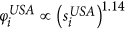where the parameters γ and α are estimated from the data for each of the regional ATNs in the USA and the Schengen. We would like to caution here that the estimation of a statistical relation like the power-law should not be conflated with an explanatory mechanism between the intra- and inter-network degrees of the considered international airports. Clearly, the power-law is a simplified fit or a first approximation to the scatter of data points in Fig. 2. For the purpose of illustrating the functions of the RAIN model, however, this is helpful in showing how an overly simple choice of Fsel impacts the final results (see section Results below).