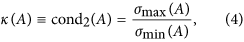 The already mentioned condition number κ depends only on A, i.e., the system of equations used to estimate the density matrix from the experimental data b. The reliability of the reconstructed density matrix ρ, which corresponds to the vector x = A−1b for a given set of rotations A (representing our linear tomographic system) and for measured data b depends on the value of κ. To show the operational (or physical) importance of condition numbers more explicitly, let us recall a well known theorem (Theorem 8.4 in ref. 34): Consider the system Ax = b with nonsingular A. Assume perturbations δb in b. If perturbations δx are defined implicitly by A(x + δx) = b + δb, then it holds34: