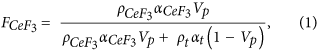 The values of the X-ray induced singlet oxygen quantum yield, η, can be used to estimate the 1O2 dose achievable with CeF3-VP conjugates during standard cancer radiotherapy. Several effects must be taken into account in this calculation. Firstly, the nanoparticles contain heavier elements than in tissue and interact more strongly with ionizing radiation, so that they receive a higher radiation dose than the tissue for the same total incident X-ray dose. To quantify this effect we determined the partitioning of the radiation dose between the nanoparticles in the tissue and the tissue itself (see Supporting Information Section S7). The fraction of radiation energy absorbed by the nanoparticles,
