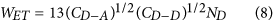 where R is the distance between the donor and the acceptor, CD−A is the transfer constant defined as34: