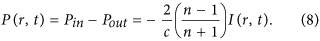 Here, we are considering a laser beam normally incident from air onto a flat surface of a dielectric liquid. The pressure P imparted by the surface force can be calculated by integrating the normal component of f across the interface air/liquid as
