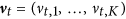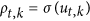 . Using these definitions of vt and yt, we define the membrane potential ut,k and firing probability ρt,k of state neuron k at time t by