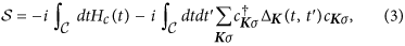 We use the lowest order self-consistent hybridization expansion (non-crossing approximation, NCA) to compute the Green’s function GK from the action (3). NCA is a diagrammatic expansion around the atomic limit (ΔK = 0), which can be formulated in terms of pseudo-particles representing the many-body eigenstates