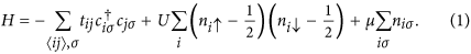 Here the operators ciσ create an electron with spin σ at lattice site i, U is the on-site interaction and tij is the nearest neighbor hopping. We measure energy in units of t*