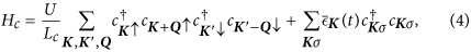 , K = 0). The exponential scaling of dmax with Lc currently restricts the implementation of real-time NCA to the 2 × 2 cluster used here, which should be sufficient as a minimal model to capture short-range spin-fluctuations in an antiferromagnet. For the numerical solution we use a hybrid parallelized implementation, where Green’s functions for different quantum numbers are distributed over several compute nodes, while the solution of the pseudo-particle Dyson equations uses a shared memory parallelization.