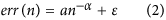 where err(n) is the error rate for training set size n, a is the learning rate, α is the decay rate, and ε is the Bayes error. The model parameters [a, α, ε] can be estimated via a constrained non-linear minimization35.