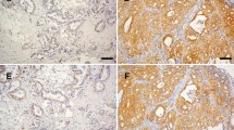 The immunohistochemical procedures and quantification methods were as described previously27. The intensities of the signals were evaluated independently by three observers. Immunostaining scores were defined as the cell staining intensity (0 = nil; 1 = weak; 2 =moderate; and 3 = strong) multiplied by the percentage of labeled cells (0–100%), leading to scores from 0 to 300. A score over 150 was rated as “high” immunostaining, while a score less than 150 was rated as “low.” The cytoplasmic expression and nuclear expression of β-catenin were separately examined by at least two observers28. High-nuclear β-catenin tumors were defined as high-nuclear β-catenin/high-cytoplasmic β-catenin (N+/C+) and high-nuclear β-catenin/low-cytoplasmic β-catenin N+/C−; otherwise, low-nuclear β-catenin tumors were defined as N−/C− and N−/C+.