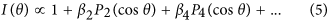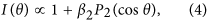 where θ is the polar angle from the photon polarization axis, P2(x) = (3x2 − 1)/2 is the 2nd order Legendre polynomial, and β2 is called an asymmetry parameter.
