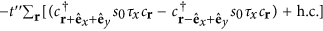 which includes the spin-conserving intra-orbital nearest neighbor hopping, the Rashba spin-orbit coupling, and the nearest-neighbor time-reversal invariant pairing. Lastly, we have the next-nearest neighbor hopping,