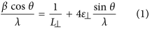 where λ is the X-ray wavelength, β - the integral breadth (instrumental corrected FWHM) and θ - the Bragg angle. The plot of (β cos θ)/λ versus (sin θ)/λ gives the value of the strain from the slope and the vertical coherence length from the ordinate intercept.
