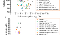 We conduct tensile tests on an Instron Static Tester (series 5569) using subsize specimens with a gauge dimension of 25 mm × 6 mm × 6 mm according to ASTM E8 standard at a strain rate of 3.33e-4 s−1. Yield strength (YS, 0.2% offset method), elongation at break (% EL) and ultimate tensile strength (UTS) were measured from the engineering stress-strain curves. Vickers microhardness (HV) (100 g f, 15 s hold) measurements were performed on the metallographic samples using a Future Tech FM-300e microhardness tester.