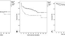 Group B (GRWR ≤ 0.8%) had significantly higher overall survival rates than group A (GRWR > 0.8%) (p = 0.009) (Fig. 1). However, the corresponding tumor-free survival rates did not differ significantly between the two groups (p = 0.133) (Fig. 1). The differences for pre-transplant status, determined based on the number of tumor nodules, size of the largest tumor, preoperative AFP level, and neoadjuvant treatment may have influenced the survival rates significantly. Therefore, we repeated the survival analysis of the 151 recipients who met the Hangzhou criteria. Among these patients, the overall survival rates did not differ significantly between the two groups (p = 0.953) (Fig. 2). Similarly, the tumor-free survival rates between the two groups did not differ significantly (p = 0.893) (Fig. 2).