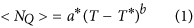The simulated data are fitted very well by the power-law function and the statistical correlation parameter R2 is better than 0.99. At T*, <NQ> should be zero, which means the system has no structural “defect” and should be the ideal glass. Thus, T* should be the ideal glass transition temperature. However, as shown in Table 1, T*is much lower than the glass transition temperature Tg and even lower than Vogel-Fulcher-Tammann (VFT) temperature20 for relaxation time, which is thought to be the ideal glass transition temperature. Therefore, although the fitting seems very well, equation (1) might not reflect all the nature of the temperature dependence of NQ. Similar to viscosity or relaxation time which can be fitted by many equations, <NQ> might have other good fitting equations. Figure 2(b) displays another fitting equation: