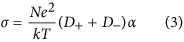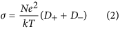 where D is the self-diffusion coefficient of the ionic species, k is the Boltzmann constant, T is the temperature, c is a constant determined by the boundary conditions, r is the Stokes radius of the ion, N is the Avogadro’s number, and e represents the electric charge. When ionic association takes place, the Nernst-Einstein equation should be modified by a dissociation factor, α.