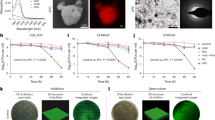 Resistant development was tested using repeated exposures in both plate lysis and MIC assays as previously described, with some modifications38. For the plate lysis assay, 2-fold serial dilutions of the proteins were spotted (10 μL) onto a freshly plated lawn of MRSA (YB57) or MSSA (ATCC25923) on BHI plates and grown overnight at 37 °C. LysGH15 dilutions were made in phosphate-buffered saline (PBS) buffer (137 mM NaCl, 2.7 mM KCl, 50 mM Na2HPO4, and 10 mM KH2PO4, pH 7.4), starting at 54 μg/mL. The cells from spots with a not fully cleared lawn (sub-lethal) were scraped, inoculated in 5 mL of BHI broth and grown to mid log phase (OD600 nm 0.4–0.6) to generate a new lawn for the next round of plating and LysGH15 exposure. After 8 rounds of exposure, the cells were grown for 5 additional overnight cultures on BHI plates in the absence of LysGH15. A new plate lysis assay was performed with the cultures resulting from these 5 non-selective grow-outs to re-assess the sensitivity of the putative resistant cultures to LysGH15. Cells obtained from each generation were used to detect the sensitivity to LysGH15, and the MICs of these cells were also determined.