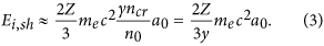 , resulting in an energy Ei,sh = mic2(γi,sh − 1) with