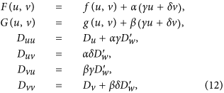 is still related to Dw via equation (13). The only restriction is that the resulting reconstructed system should be physically reasonable. This, in particular, requires that Du ≥ 0. The latter will be satified if Dv is chosen so that either Dv ≤ DuuDvv/(Du + Duu) or Dv ≥ Dvv.
