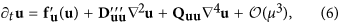 The second-order approximation (6) contains a biharmonic operator. We can approximately replace it with a reaction-diffusion system for solutions which are approximately oscillatory in space with one dominant wavenumber k, so that