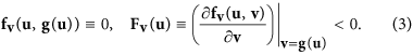 represents the time separation between the slow subsystem u and the fast subsystem v. We assume that the fast subsystem (2) has a unique globally stable equilibrium for v = g(u) at any fixed u of interest,