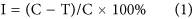 After 72 hours of incubation at 25 ± 2 °C, the mycelial growth diameters (in mm) were measured. The inhibition percentages were calculated via the following equation (1):
