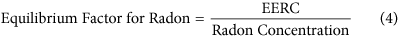 where, the quantities radon concentration, thoron concentrations EERC and EETC represent the arithmetic means (AM) over the measurement period (about 3 months). We want to mention that there is also an alternative definition of equilibrium factor, namely the mean over ratios of short term measurements. Note that in general, the ratio according our definition; AM (progeny)/AM (gas) is not equal to AM (progeny/gas). Using the geometrical means (GM) instead, the two definitions would be identical. This has also been discussed by Mishra et al.27
