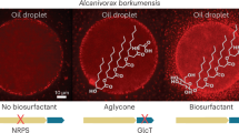 Alcanivorax borkumensis SK2 was kindly provided by Prof. Fernando Rojo (CSIC, Spain), and cultivated axenically in static glass bottles of 250 mL (operating volume 100 mL), using ONR7a medium66, initial pH 7.6, for 4 to 7 days at 20 °C. Cultures were provided with 1% (v:v) n-dodecane (Sigma Aldrich, Belgium) as sole carbon source (equivalent to about 7.5 g L−1) in order to imitate the conditions of an oil spill (high C/N ratio) as previously suggested with this strain39.