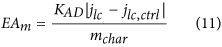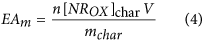 Similarly, the amount of electrons accepted per mass of char EAm is: