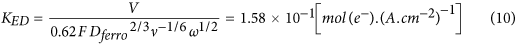 With KED the constant ratio between the charge donated by the char [mol(e−)] and the background-subtracted limiting current density (jla−jla,ctrl) in [A.cm−2]: