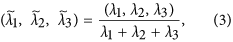 in the same fashion since the eigenvalues identify a three-dimensional ellipsoid and are invariant against rotations and translations. In addition, we normalized theeigenvalues as