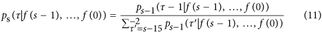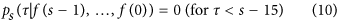 by assuming the independence of distributions. This was justified with the assumption that τ is between −15 and −1 at s = 0, hence τ should be between s −15 and −1 at time s, and the sum of the probabilities must be unity.