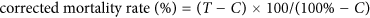 where T is the mortality rate in the group treated with the tested compounds, and C is the mortality rate in the blank control group (T and C were all expressed as the percentage).