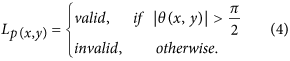 We employ the following heuristic to determine whether the gradient of a pixel is appropriate for participating in the voting strategy,