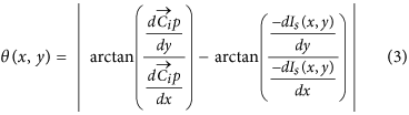 , formed by the current pixel, p, and the center of Ci. We then compute the angle difference θ(x, y) between the vector