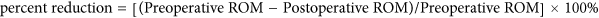 The percentage of reduction in movement after the arthrodesis was calculated as follow:
