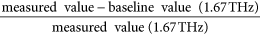 The results were compared with quantitative data from a commercial biological method (ELISA-like reaction). The data from both methods were normalized based on the degree of the M-293T sample, which had the highest methylation ratio. THz results were quantified by the height of the resonance peak of the baseline-corrected results and baseline values.