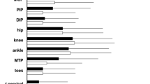 Next, we quantified the number of patients who tested positive for serological markers of inflammation or autoimmunity (Table 3), such as ANA, RF, or anti-citrullinated protein antibodies (ACPA); however, it is difficult to determine the significance of these findings because not all patients in the limited workup group were tested for all of these markers. Interestingly, we found that 21 of the patients in the comprehensive workup group (23.9%) were tested positive for HLA-B27 (Table 3). A previous study found that the overall prevalence of the HLA-B27 antigen in the general population of the United States, was 6.1%10. Based on this observation, the prevalence of HLA-B27 in our patient population who received comprehensive workup was significantly higher than that of the general population (p-value = 2.2 × 10−8).