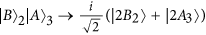 acquires an overall phase factor −i due to the three reflections that occur in the paths A1, B2 and B3, and acquire a reduction in amplitude by a factor of 1/2, because of the possible transmissions of photons 1 and 2 at BS4 and BS5, respectively, which we are neglecting. Thus, we have the following evolution: