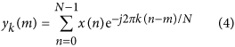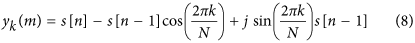 where x(i) represents a vector of data points of any waveform and i ranges from 1 to N. At the end of the loop where m = N, X(k) is equal to yk(m) and therefore the frequency of interest is filtered out.