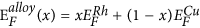 , are the Fermi levels of pure Rh, Cu and the alloy, respectively. This equation predicts a progressive shift to higher BE with increasing Cu content, which is consistent with the experimental data presented in Fig. 4(b) (refer to arrow labeled as