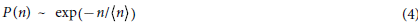 where P(n) is the probability of finding a string of length n at the characteristic time, t*. We examine the length n of the strings over a time interval t* and make a histogram of the string length t* to obtain P(n). We repeat this procedure for a number of t* intervals to achieve better statistics. Note that the ‘string length’ n is dimensionless as it involves the number of atoms participating in the string. The strings are highly polydisperse in length and we characterize the length by L, the mean value of n determined from the string length distribution. Eq (4) implies that the average string length 〈n〉 = L can then be determined from the slope of the fitted lines in Fig. 6. The average string length determined in this way is estimated to equal L = 1.22 ± 0.05 for glycerol, but no appreciable collective exchange motion within ubiquitin for TIP3P water at this temperature was observed, i.e., L ≈ 1. Evidently, the cooperative motion within protein atoms is suppressed when water is added.