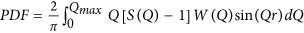 , n indicates the number of atomic species in the investigated sample, ci is the concentration and fi is the atomic scattering factor of the ith element, respectively. The diffraction data were then converted to a real space representation in the form of the pair distribution function