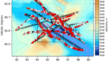 Seismic data were recorded by eight free-fall ocean bottom seismometers equipped with Güralp CMG-40T broadband sensors and HiTech Inc hydrophones deployed on October 17, 2012 (Fig. 1b). Seismic records of individual stations span 7–10 month depending on battery capacity. The recorder clock drift was corrected, assuming a linear drift during the recording interval, with the method of ref. 33 and taking station 47 as reference station. Event identification in the waveforms, phase onset picking and the hypocentre location based on a 1D velocity model are documented in ref. 12. Pick uncertainties were estimated during the manual picking procedure and have averages of ±0.07 s and ±0.11 s for P- and S-phases, respectively. S-phases were generally picked on horizontal channels, except for stations 42, and 45 where horizontal channels were malfunctioning.