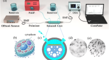 To demonstrate that the WLSI-based spectrometer can be used for biomedical applications, the developed spectrometer was employed to observe aggregation of GNUs for oligonucleotide detection. The SA-GNU surface was conjugated with biotinylated probes with sequences complementary to the target strand. After introducing target strands, SA-GNU quickly aggregated due to the interactions between the target strands and probes. The original concentration of the SA-GNU solution was 3.51 × 1011 nanoparticles/mL, and the binding capacity for 1 mg of SA-GNU to biotin is 2.33 nmol. The volume of the homemade reaction chamber was approximately 500 μL (16 × π × 10 mm3).
