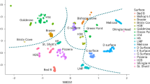 A geometric morphometric analysis was conducted on a subset of Parvancorina specimens (N = 57) from Parv Bed in order to assess morphological variation; the remainder of the specimens from Parv Bed (N = 36) are not preserved well enough for the purposes of accurate landmarking and semi-landmarking. To conduct the semi-landmark analysis, the following steps were taken: Specimen latexes were coated with ammonium chloride, then photographed using a Canon EOS 5D digital camera with a Canon MP-E 65 mm 1–5x macro lens. Landmarking and semi-landmarking (see Supplementary Fig. S4) was conducted using the Thin-Plate Spline (tps) suite (http://life.bio.sunysb.edu/morph/index.html). A tps file was constructed using tpsUtil64 (v.1.7)62. The tps file was imported into tspDig2 (v.2.26)63, which was used to place the five landmarks and 80 semi-landmarks around the Parvancorina anchor structure and populate the tps file with the semi-landmark and landmark data. The tps file was imported into an R environment58. The ‘geomorph’ package64 was used to conduct the Procrustes Superposition and Principal Components Analysis (PCA) of the superimposed data, producing Fig. 2B.