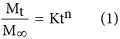 where Mt/M∞ represents the drug dissolved fraction at time t, K is a kinetic constant and n is the diffusional exponent. When n < 0.45, this corresponds to a Fickian (case I) diffusion. When 0.45 < n < 0.89, this corresponds to an anomalous (non-Fickian) transport (where release is controlled by a combination of diffusion and polymer relaxation). If n = 0.89, this corresponds to a zero order (case II) transport (where the drug release rate is independent of time and involves polymer relaxation), and n > 0.89 to a super case II transport46. However, this equation is valid only for the early stages (≤60%) of drug release47.